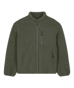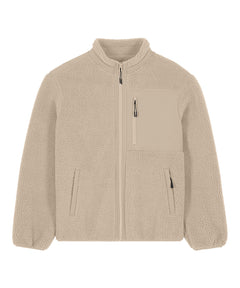 Premium unisex Sherpa jacket in 100% recycled polyester. Relaxed fit, 450gsm. Fully bonded inside fleece layer with an anti-pill finish. Contrast softshell inserts.