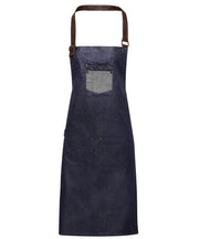 Division waxed-look denim bib apron with faux leather