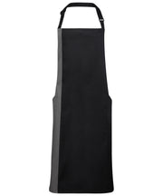 A classic full bib apron with a contrast coloured panel appearing along the length of the right hand side which can be an excellent branding solution. The colours used on this apron are part of the 'Colours Collection' from Premier. Featuring two slanted side pockets and useful adjustable buckle on the neckband.